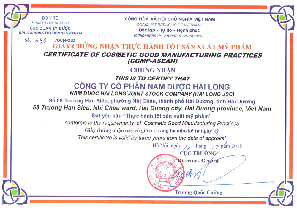 - Các sản phẩm tại Nam Dược Hải Long được kiểm định nghiêm ngặt theo tiêu chuẩn CGMP của Bộ Y tế